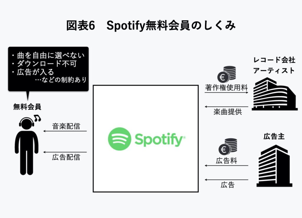 スポティファイの無料プランは、ユーザーが広告を挿入される代わりに音楽を聴くことができるシステムです。オフライン再生や無制限のスキップは有料プランに比べて制限されていますが、約7000万曲以上のライブラリーにアクセスでき、様々なジャンルの音楽を楽しむことが可能です。
