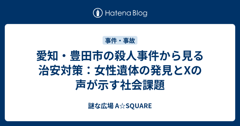 豊田市は愛知県に位置する都市で、比較的治安が良いことで知られています。しかし、最近では少しずつ犯罪率が上昇しており、市民の不安が高まっています。この事件は、地元コミュニティに大きな衝撃を与えました。警察は犯罪の動機や容疑者の特定に向けて全力を挙げて捜査を進めています。
