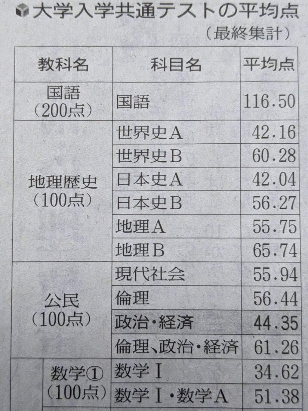 2023年大学入学共通テストの平均点について